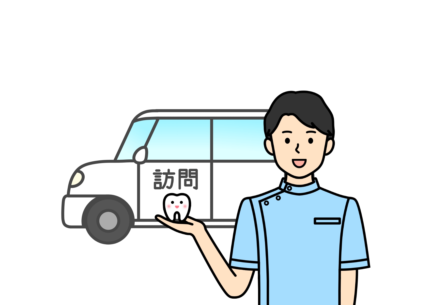 訪問診療とは、歯科医師や歯科衛生士がご自宅や施設・病院を訪問し、診療専用の携帯機器を使って歯の治療や口腔ケアを行うサービスです。